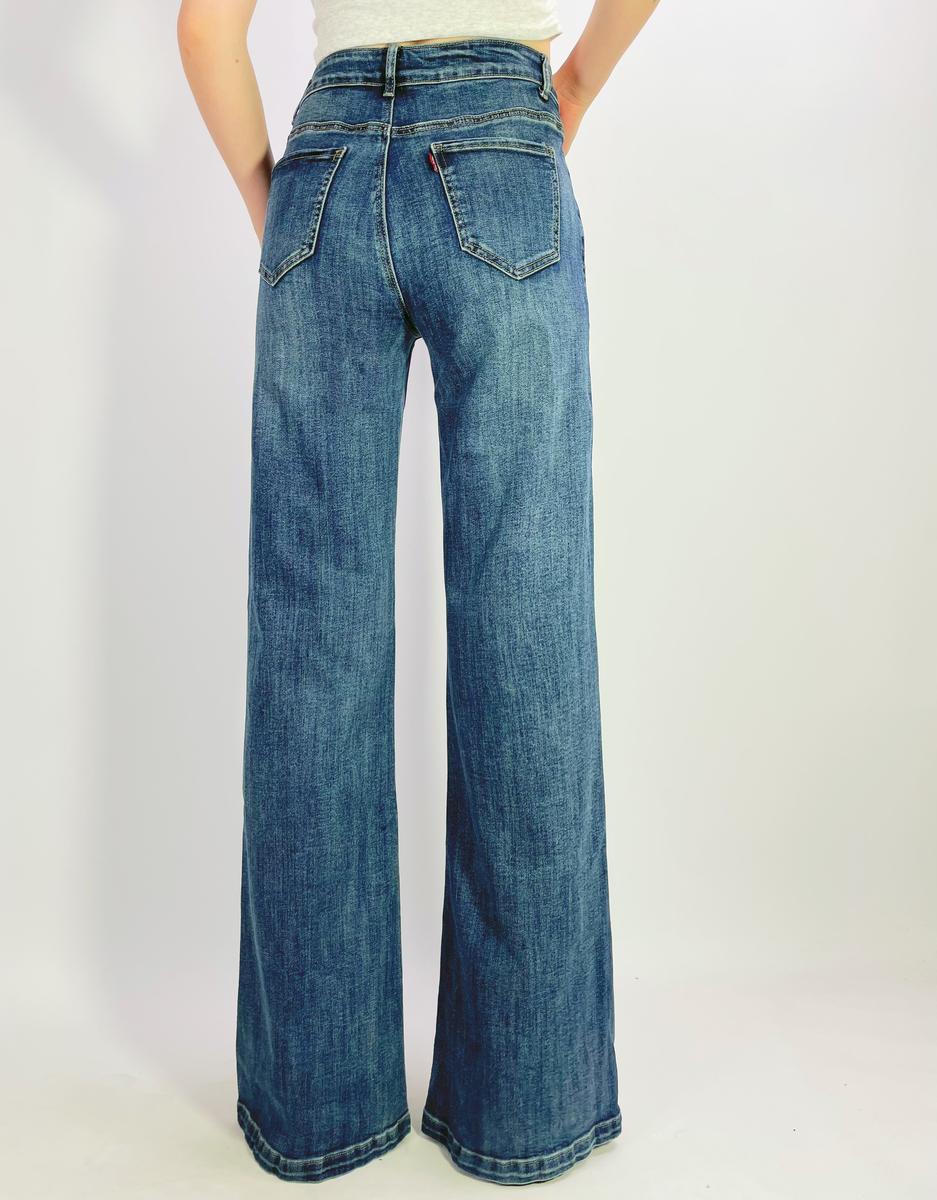 Jean premium stretch wide leg avec strass T38-T48 H055