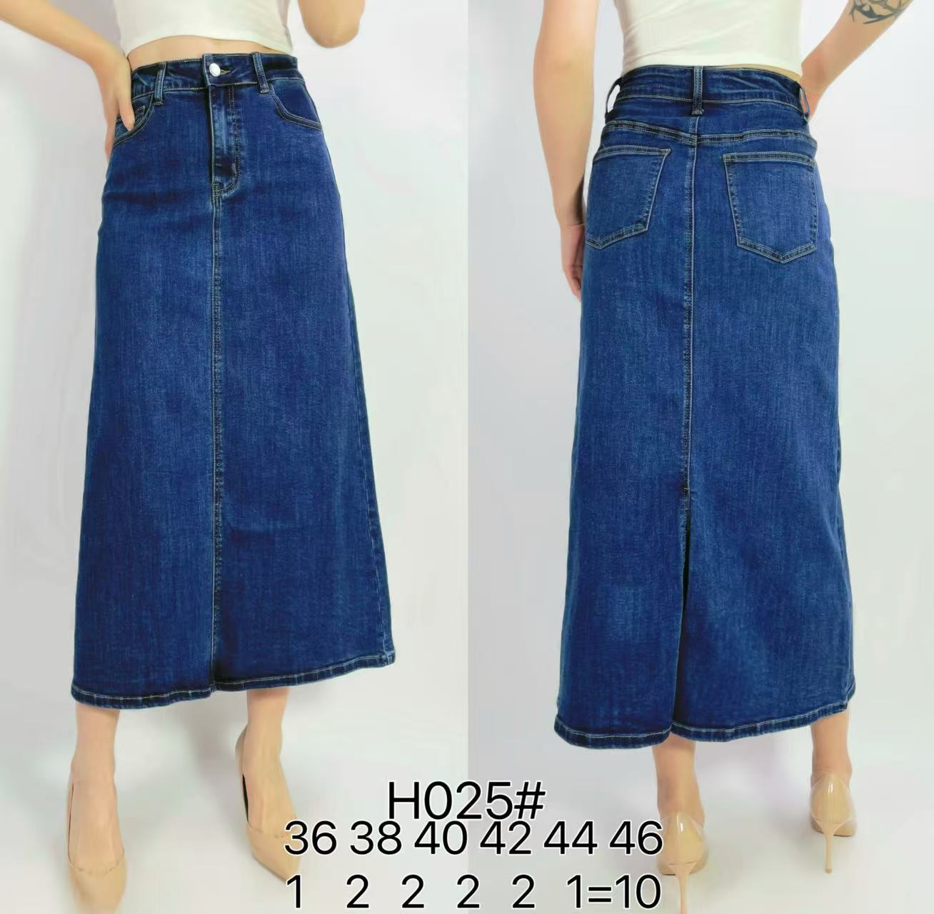 Jupe en jeans stretch 83cm avec fente arrière H025